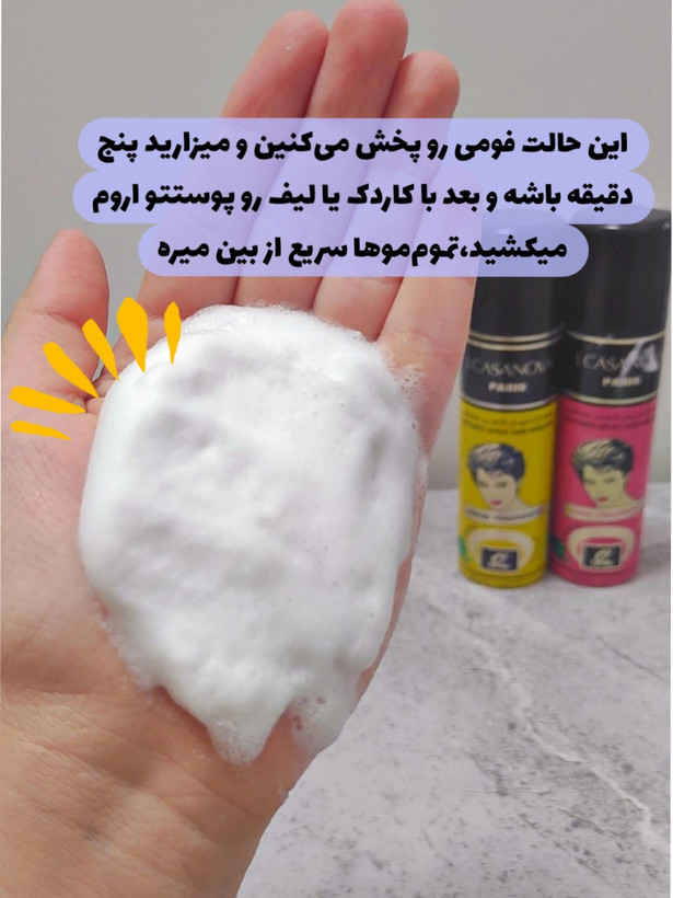دیدن محصولات مرتبطبوي ملايم ۲. ضد التهابات پوستي، درد و حساسيت ۳. تضعيف ريشه مو ۴. سرعت عمل بالا طريقه مصرف:قبل از استفاده پوست خود را خشک کرده و ترجيحا طوري اسپري کنيد که محلول به ريشه موها برسد و پس از ۵ الي ۷ دقيقه تحمل کنيد (در صورتي که موهاي محل مورد نظر شما ضخيم باشد ، ۱۰ دقيقه تحمل کنيد) و سپس موها را با آب ولرم از سطح پوست بشوييد.