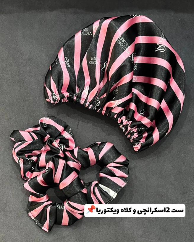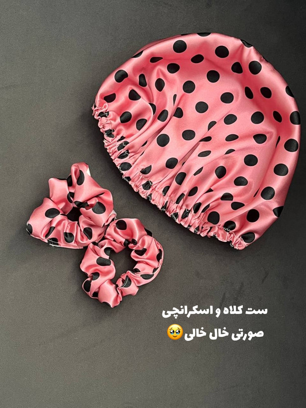 ست کلاه و اسکرانچی ساتن طرح دار