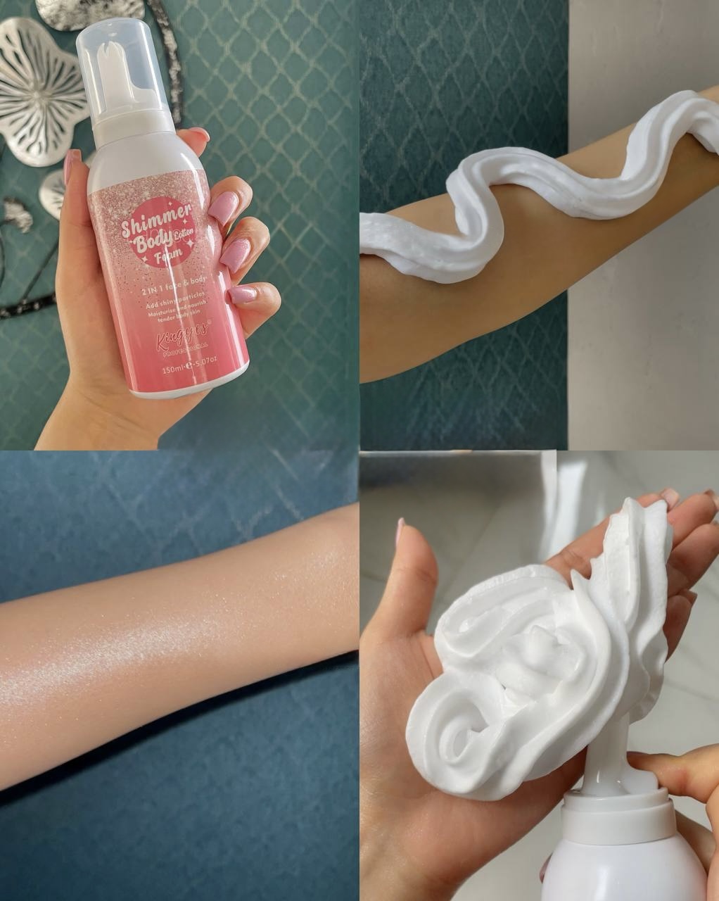 بافتی سبک و کرمی دارد که پوست را عمیقاً آبرسانی کرده و با ذرات درخشان، نوری لطیف و جذاب روی بدن ایجاد میکند.